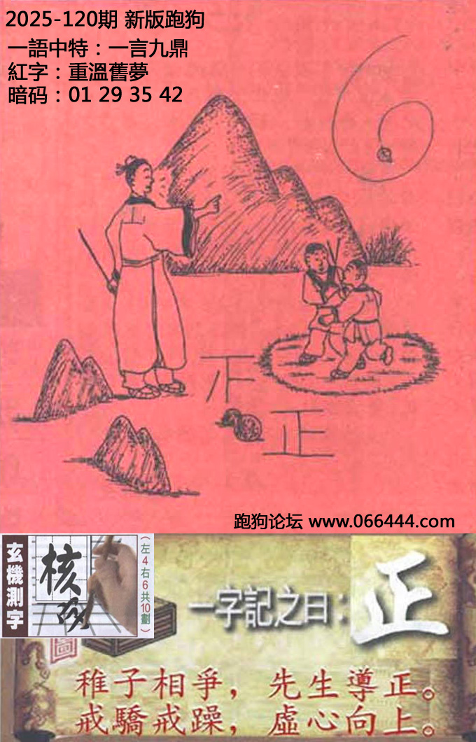 120期新版跑狗一字記之曰:【正】